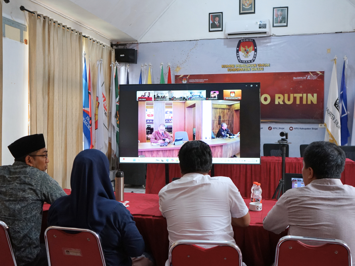Komisi Pemilihan Umum (KPU) Kabupaten Sinjai mengikuti Webinar Membangun Budaya Kerja Berbasis Data di Lingkungan KPU yang diselenggarakan oleh KPU Republik Indonesia. Kegiatan ini diikuti oleh komisioner KPU Sinjai sebagai bagian dari penguatan kapasitas sumber daya manusia dalam pengelolaan data kelembagaan, Jum'at (14/11/2025).
