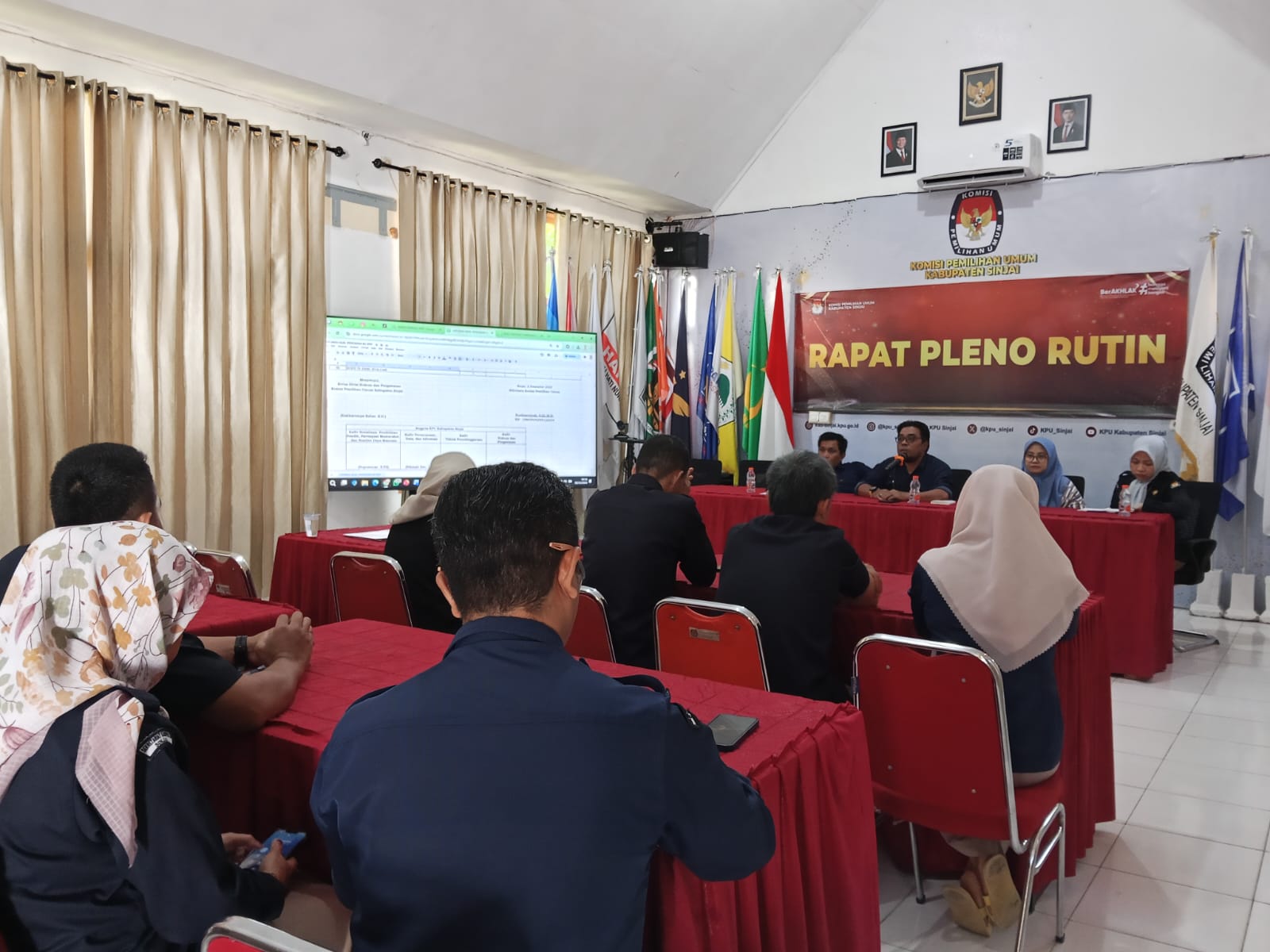 Komisi Pemilihan Umum (KPU) Kabupaten Sinjai melaksanakan Rapat Pleno Rutin yang dirangkaikan dengan Rapat Pleno Sistem Pengendalian Intern Pemerintah (SPIP) pada (2/12/2025) di Aula Kantor KPU Sinjai. Rapat dipimpin oleh Ketua KPU Kabupaten Sinjai, Muhammad Rusmin, dan dihadiri oleh para Anggota KPU serta jajaran Sekretariat.