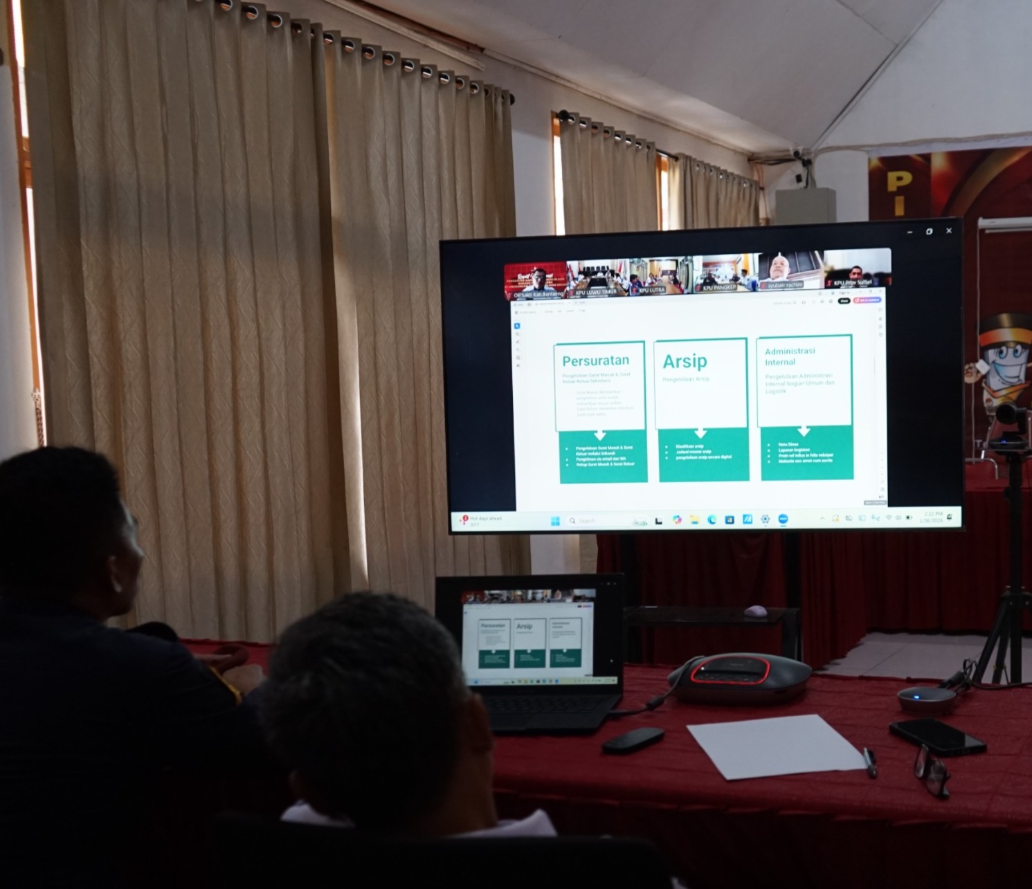 Komisi Pemilihan Umum (KPU) Kabupaten Sinjai mengikuti kegiatan Rapat Koordinasi Awal Tahun 2026 Sub Bagian Keuangan, Umum, dan Logistik yang diselenggarakan oleh KPU Provinsi Sulawesi Selatan bersama KPU Kabupaten/Kota se-Sulawesi Selatan pada Senin (26/1/2026) melalui zoom meeting.