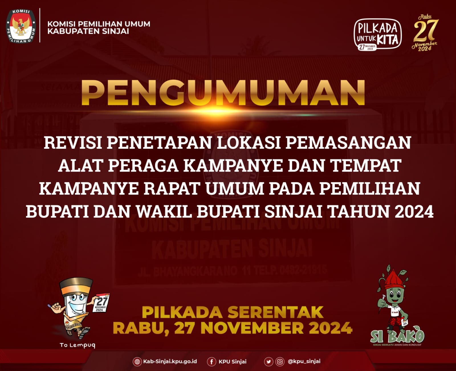 Revisi Penetapan Lokasi Pemasangan Alat Peraga Kampanye Dan Tempat Kampanye Rapat Umum Pada Pemilihan Bupati Dan Wakil Bupati Sinjai Tahun 2024 Klik disini