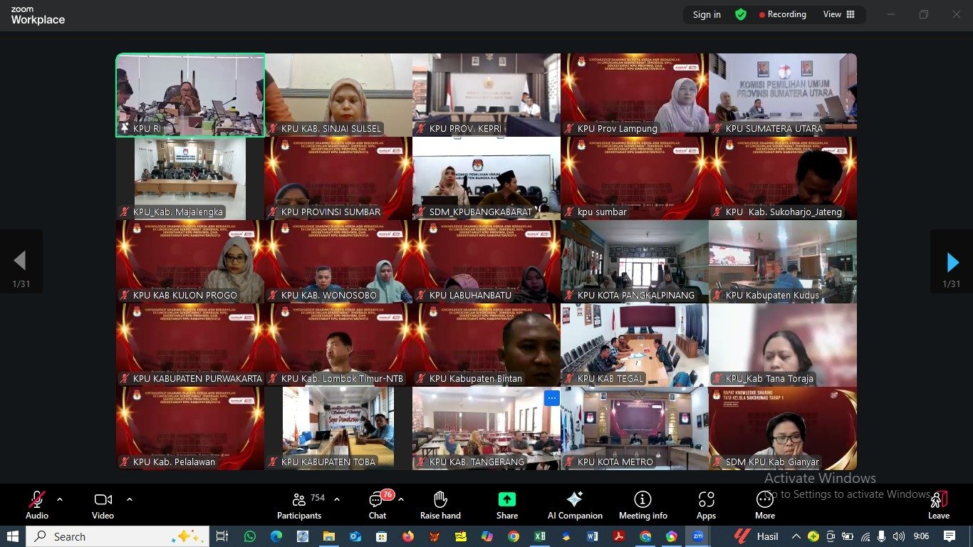 Knowledge Sharing Budaya Kerja ASN BerAKHLAK di Lingkungan Sekretariat Jenderal KPU, Sekretariat KPU Provinsi, dan Sekretariat KPU Kabupaten Kota