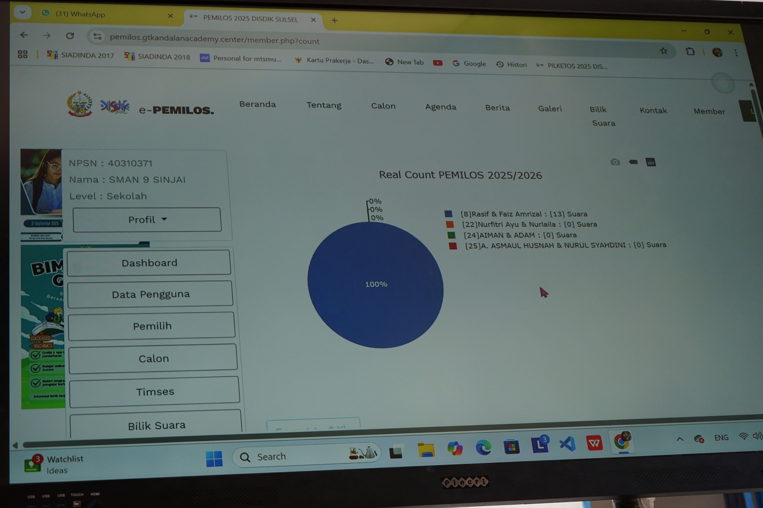 Pemilihan Osis dan Wakil Ketua Osis Serentak UPT SMAN 9 Sinjai